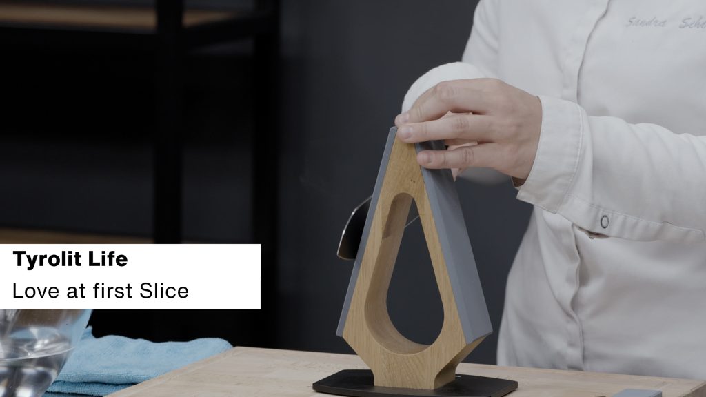 Spitzenköchin Sandra Scheidl erklärt Ihnen die einfache und präzise Anwendung der Tyrolit Life Messerschärfe.